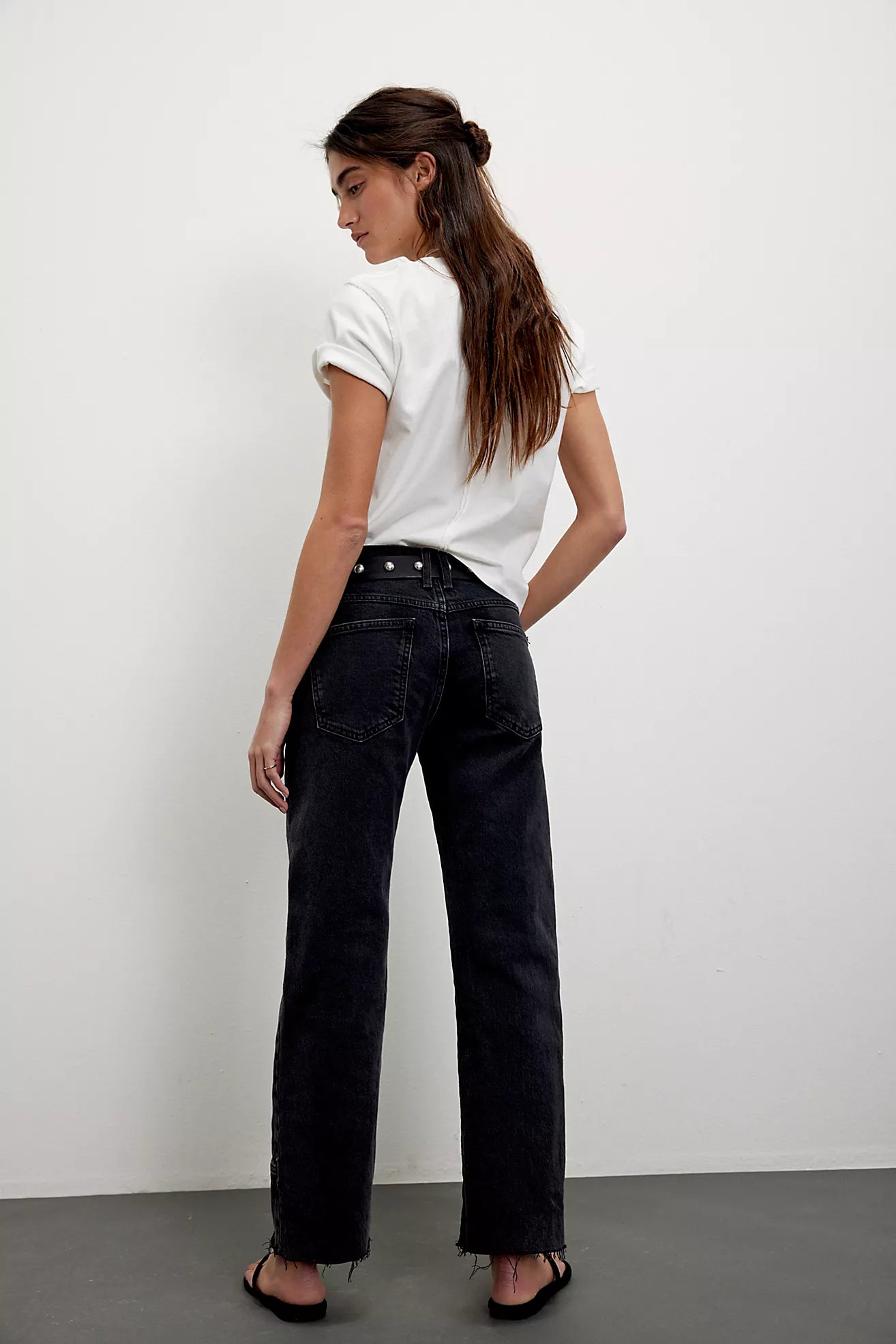 Fit: Mid-rise, true straight silhouette with semi-rigid denim