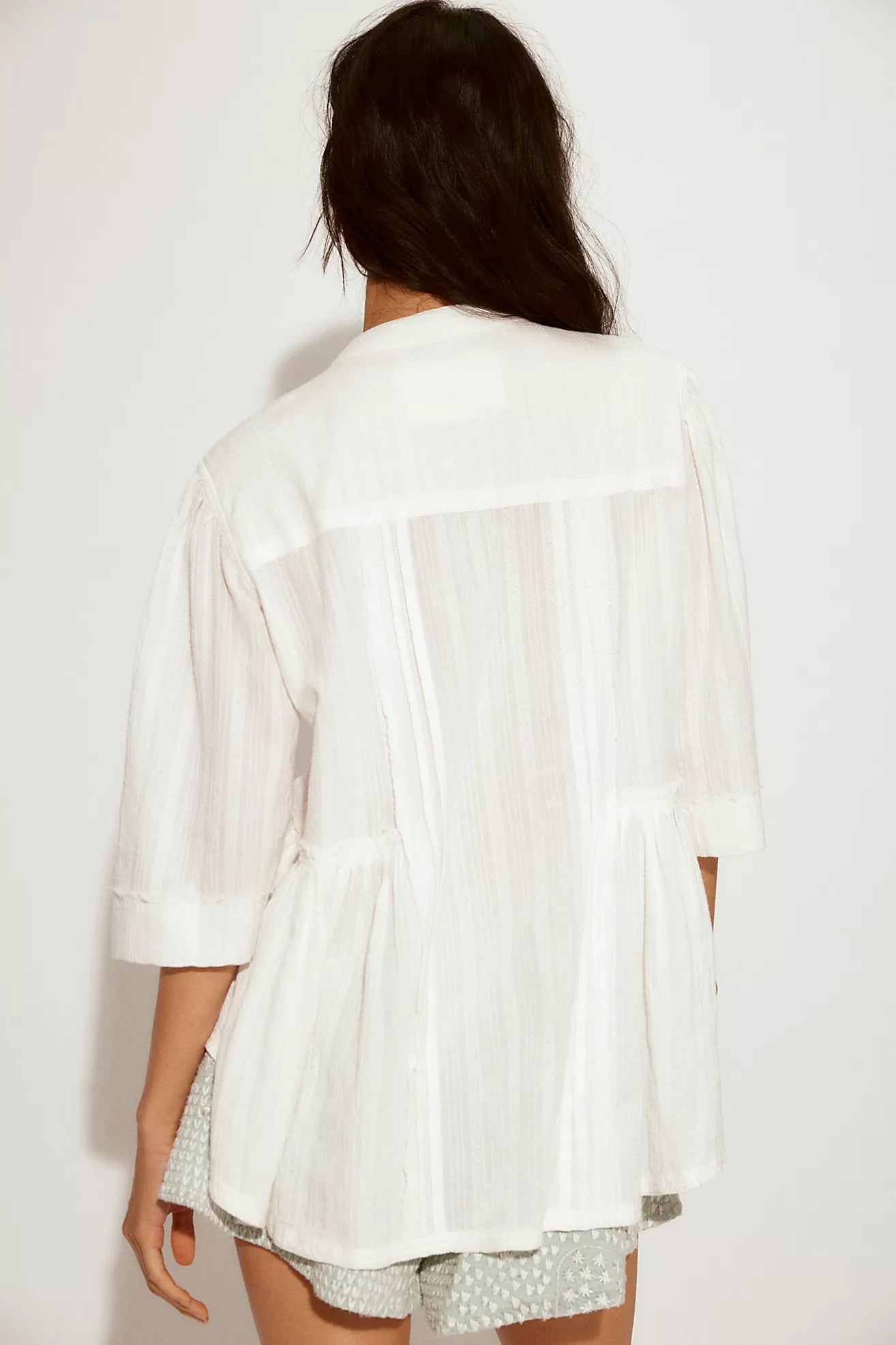 Fit: Relaxed, billowy Features: Textured cotton fabrication, collarless neckline, button-front closure, elbow-length sleeves, pleated and shirred accents Why We ❤ It: Perfect paired over your fav bralette.