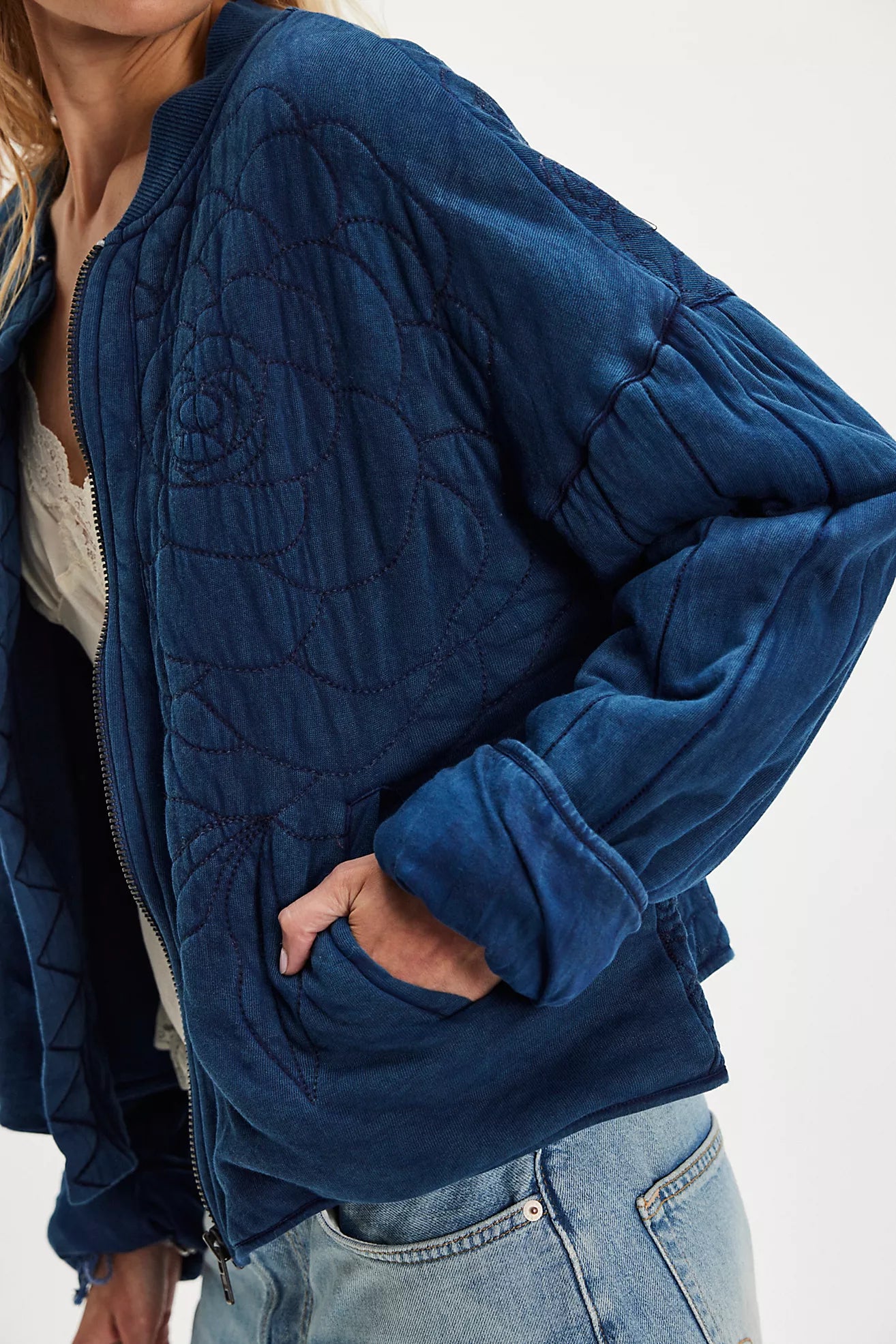 Free People Rose Zip-Up Sweatshirt/Indigo
