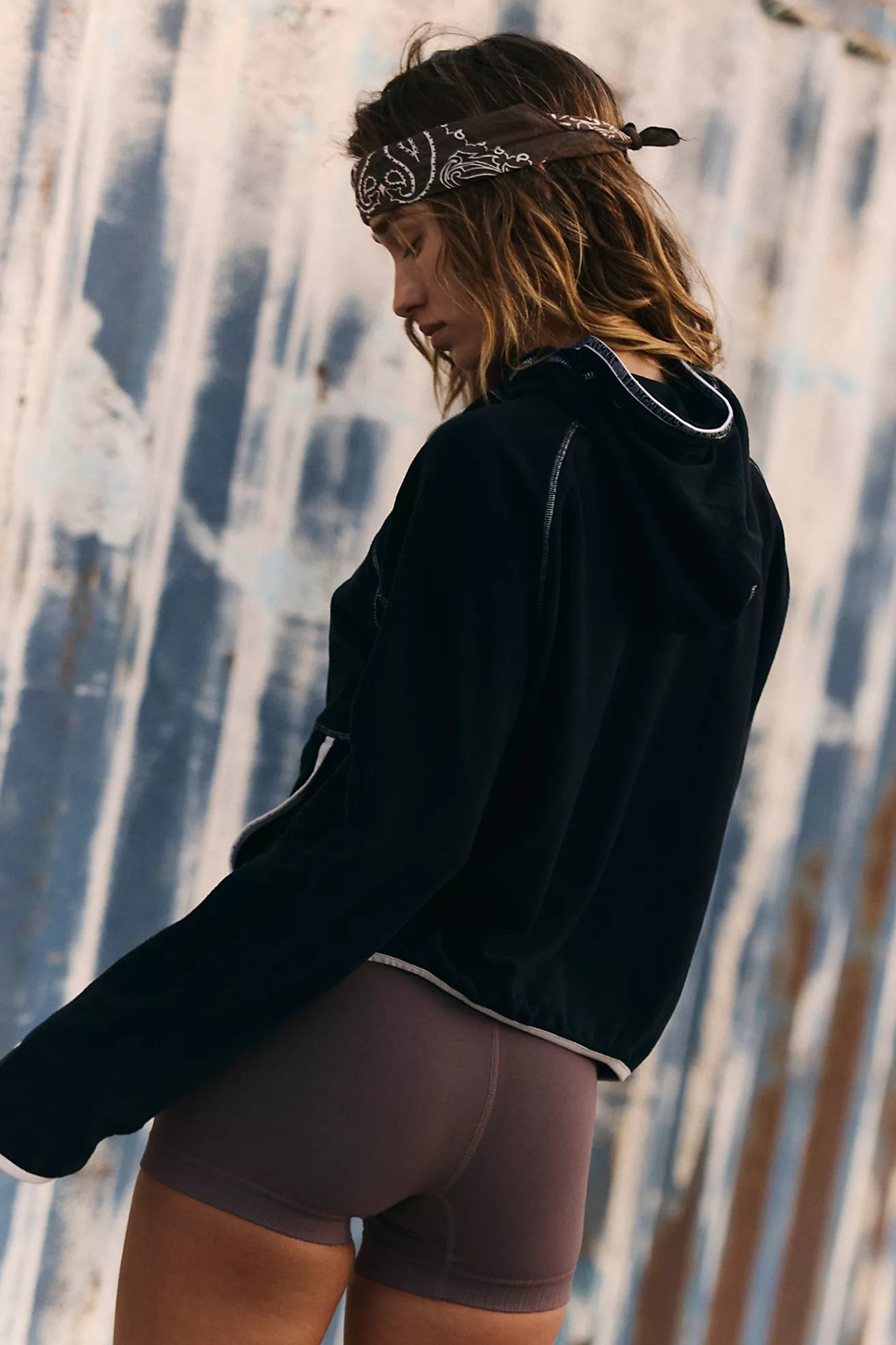 Cozy and cropped, this pullover is a must-have when the temps drop. Featuring a warm fleece fabrication in a cropped silhouette with a cowl-neck hood and reflective bungee details for a versatile fit.
