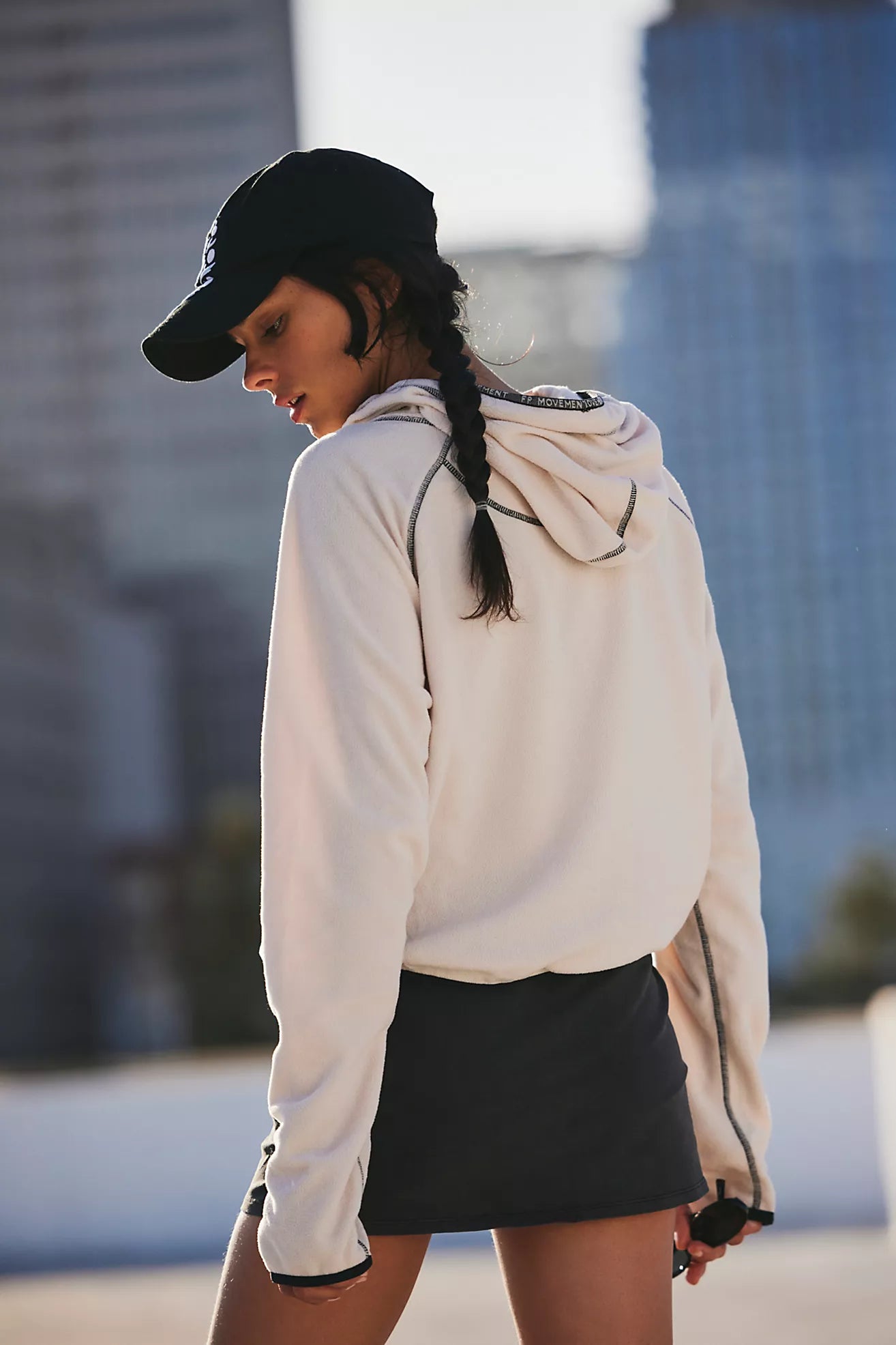 Cozy and cropped, this pullover is a must-have when the temps drop. Featuring a warm fleece fabrication in a cropped silhouette with a cowl-neck hood and reflective bungee details for a versatile fit.