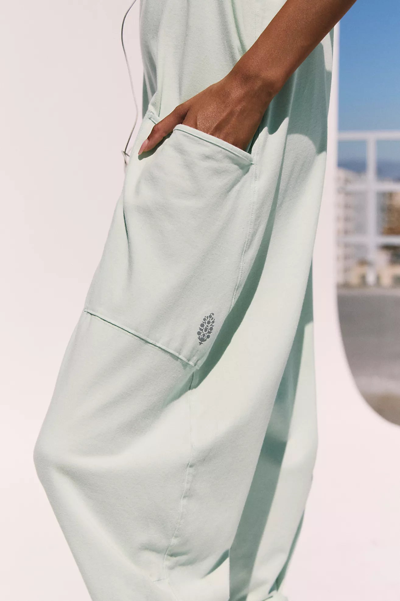 This soft and comfy onesie features a slouchy, relaxed-fitting design with a dropped crotch and convenient side pockets.