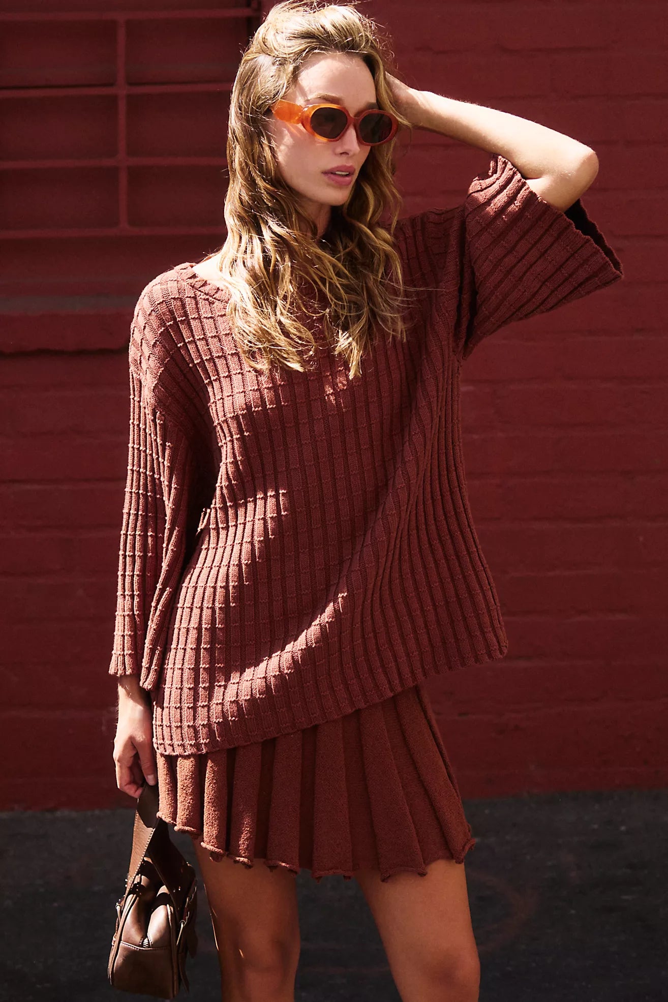 Fit: Top: Oversized, slouchy fit; Skirt: A-line silhouette that sits at the natural waist Features: Top: Cozy ribbed fabrication, wide boat neckline, dropped shoulder seams; Skirt: Pull-on design, coordinating cozy knit, undone hemline Why We ❤ It: Effortless with easy sandals or elevated with platforms, you’ll be reaching for this again and again.