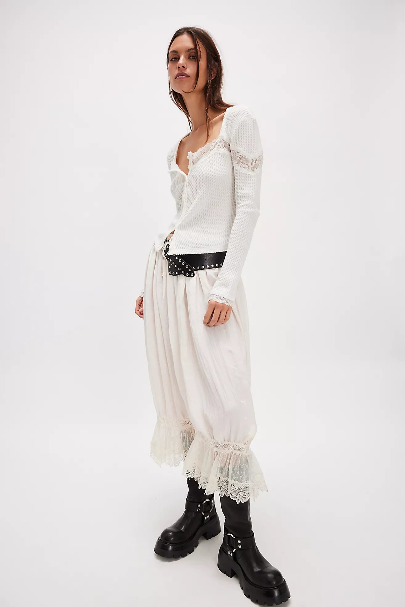 Lace trims give this waffle-knit cardigan the perfect femme touch.