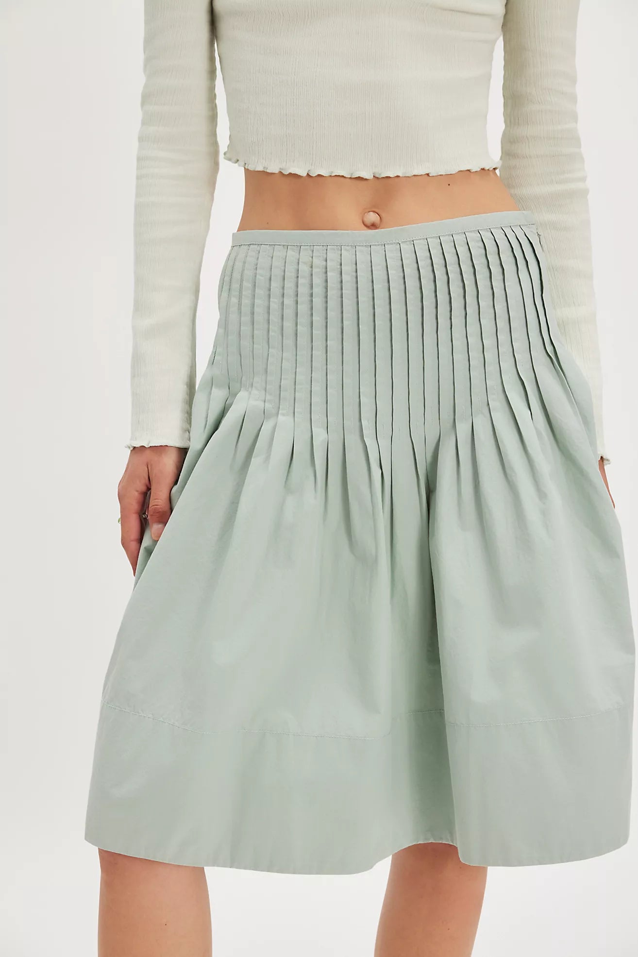 Fit: High-rise, relaxed A-line fit Features: Pintuck placket detailing at the top, curved drop-waist detail, soft poplin fabrication, invisible side zipper Why We ❤ It: Bold with tall boots or off-duty with court sneakers, this style has endless ways to wear.