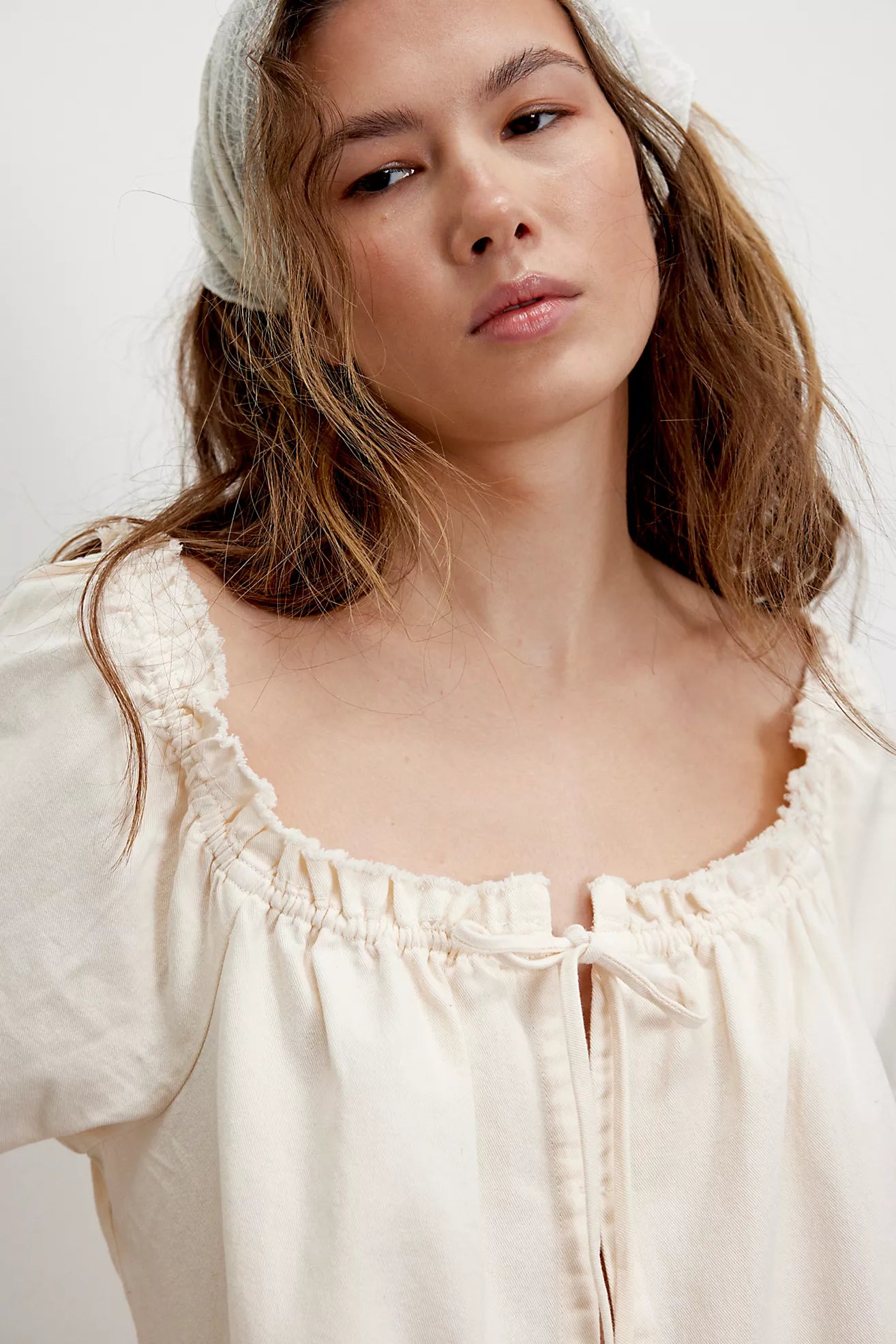 Free People We The Free Daisy Denim Babydoll Romper/Vanilla/