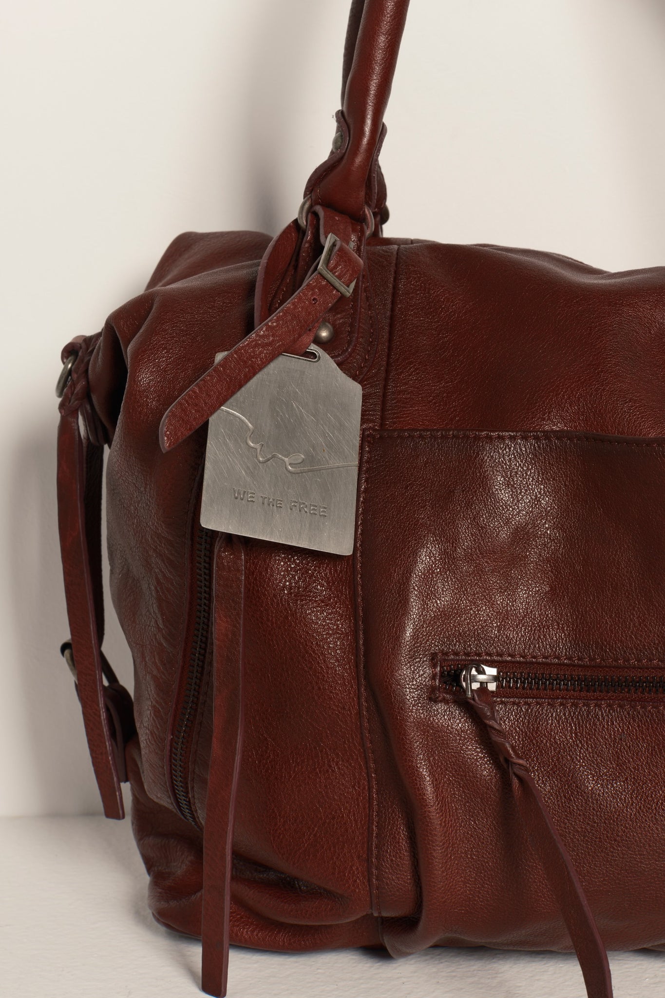 Features: Slouchy style, spacious interior, worn leather fabrication, exterior zipper compartments, exterior and interior pockets, buckle details, two top handles, detachable and adjustable shoulder strap, zipper closure, branded tag