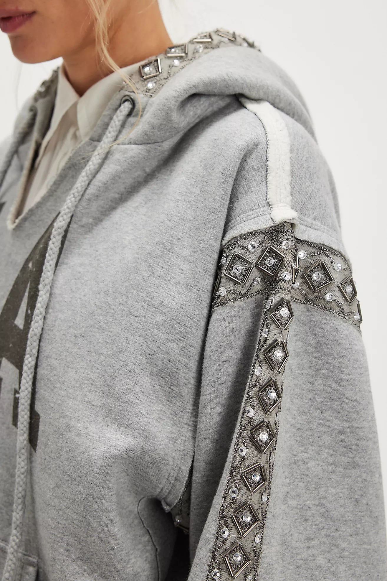 Elevate your hoodie collection with this edgy sweatshirt from We The Free, featuring a relaxed fit silhouette, a sporty-inspired graphic, and embellished accents for a bold look.