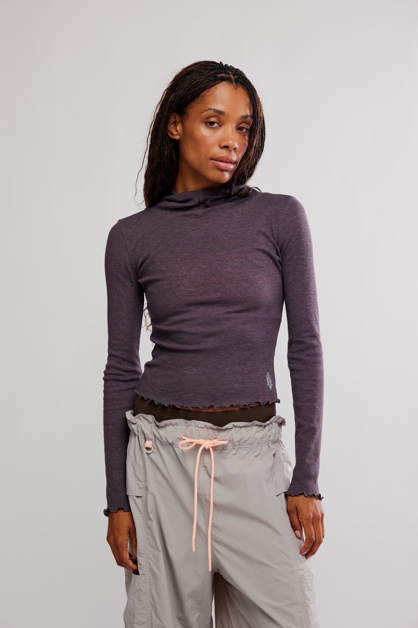 Features: Ultra-light fabrication; pullover hood; funnel neckline; long sleeves; scalloped trim; buti logo at hip.