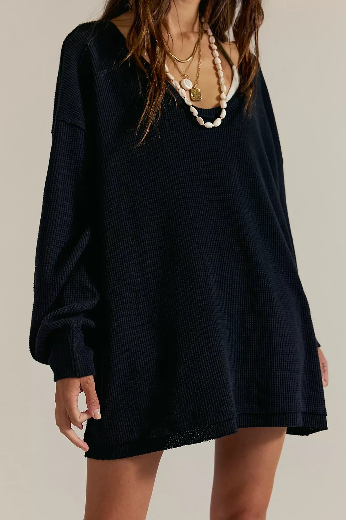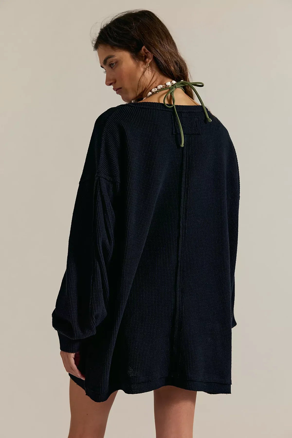 Cozy up in this oversized thermal from We The Free, featured in a waffle knit with a V-neckline and slouchy drop-shoulder sleeves for the perfect laidback look.